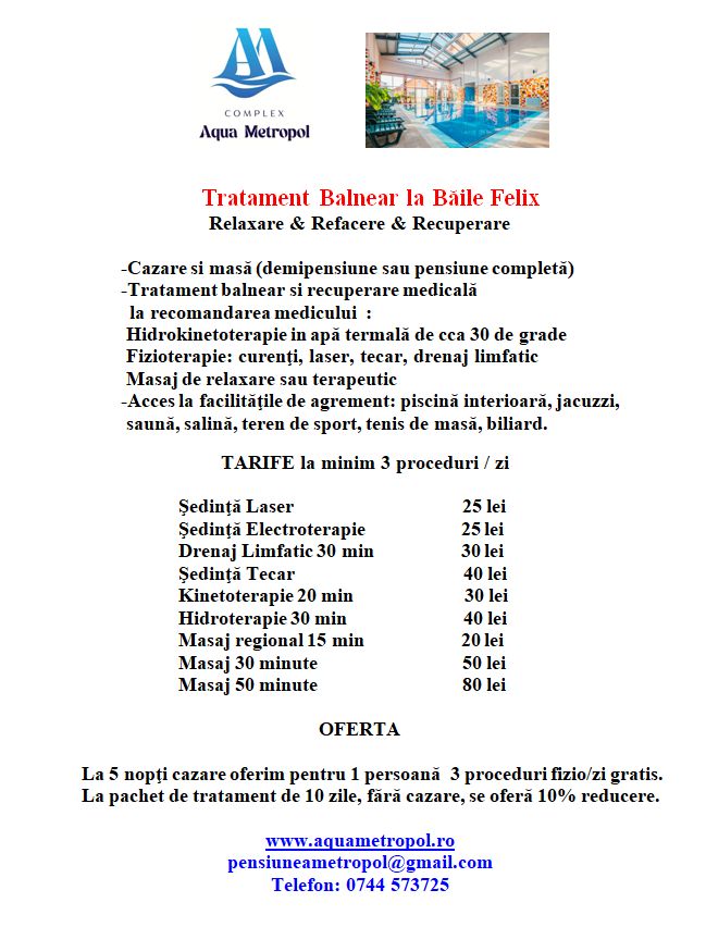 • acces piscină interioară apă cca. 30º , jacuzzi, salină